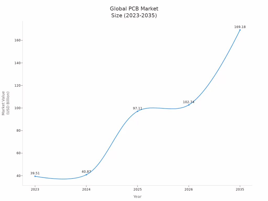 You use electronic devices every day. Have you ever thought about how they work? Inside your phone, computer, and TV is a pcb. PCB stands for printed circuit board. PCB Manufacturing is very important for technology today. It connects parts and helps new ideas grow everywhere. The global PCB market is getting bigger, as you can see in the chart below: